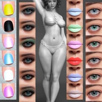 She was designed for beginners to render realistically with HDRI lights alone. Optimized for Daz Iray PBR Skin Shader with Anatomical Elements, 7 eye, 7 lips, 7 make-up and 7 nails options.