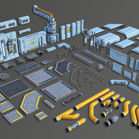 The set includes 93 elements that are made in a single style and can be an addition to 75 corridor props, you can assemble your hangar configuration from a designer.