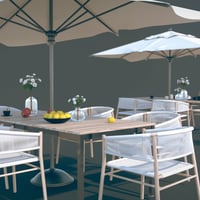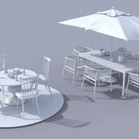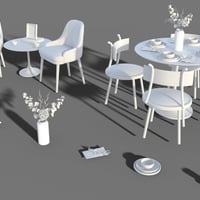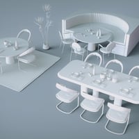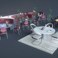 Furniture Collection Bundle 01 brings together three complementary furniture sets, covering modern interiors, dining and bar spaces, western-style scenes, and outdoor environments.This bundle includes elegant contemporary chairs and tables with decorative props, a full dining & bar setup with booths, benches, bottles, and glasses, as well as a western round table scene paired with books, beers, and industrial lighting — plus a modern outdoor dining set with parasol.