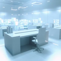 Step into a visionary workspace where form meets innovation. This Futuristic Office features an open-concept layout with sleek desks, advanced display screens, and a clean, minimalist design built for the minds shaping the future.