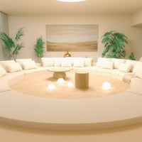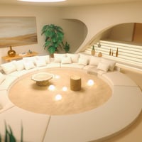 Discover peace at the core of your scene with the Sand Circle Basement, a serene underground sanctuary designed for meditation, reflection, and calm. This unique space features a central sand circle, surrounded by a large round sofa, soft cushions, and delicate vegetation accents that breathe life into stillness.
