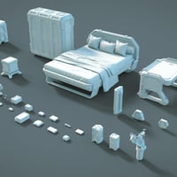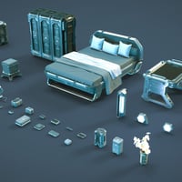 Sci-Fi Bedroom Furniture Set features sleek, high-tech bedroom furnishings with clean silhouettes, integrated lighting accents, and a strong futuristic design language. Each piece is crafted to support cinematic sci-fi scenes, modern space habitats, or advanced urban interiors.Perfect for sci-fi bedrooms, space stations, cyberpunk apartments, or AAA game-style environments, this set delivers a balance of comfort, function, and futuristic aesthetics ready for high-end renders.