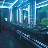 Complete your nightlife scenes with this stylish Night Club Bathroom, designed to match the bold energy of the club itself. Featuring moody lighting, sleek fixtures, and touches of tropical decor, this space blends urban edge with exotic flair.