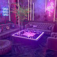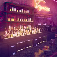 A vibrant Tropical Night Club filled with glowing lights and lush vegetation