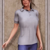Now Vicky 4 can join the 9-5 rat race in this snazzy polo shirt. This gray collared short sleeve polo shirt is perfect for any business casual office, and will keep Vicky cool while she fills out her TPS reports. The shirt also contains all applicable CrossDresser adjustment morphs for easy posing.