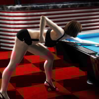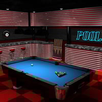 A detailed pool table with a nice setting of a contemporary room that also has a slight retro feel of a diner style. Pool table comes in three colors, has two ball styles, a ball rack, bar stool, cues with holders, cue ball and chalk. There are three poses for Genesis Michael 5, Michael 4 and Victoria 4.