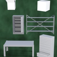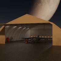Whether for a modern military base, or a science fiction outpost, this portable hangar is perfect for your temporary airfields. It comes with both a completed hangar, as well as just a frame without doors or covering. Both the front and rear doors open and slide back. Both the hangar and the frame have 2K, 4K, and 8K material options. There are two ground covering options, concrete tarmac and metal plates. Both ground options come with 4K and 8K material options. There is also a toolbox with multiple drawers and wheels, a hazardous materials cabinet, a shelf, a work table, and cardboard boxes, both open and closed. Both boxes come with morphs to adjust their size.