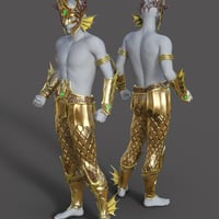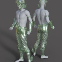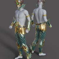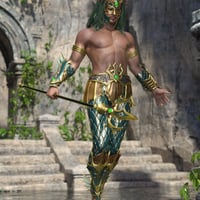The suit comes with arm guards, a belt, boots, bracers, a helmet, pants, and a trident, each with 3 material options. Show the god of the sea in action with this detailed outfit!