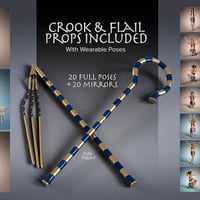 To complete your Egyptian poses, we've also included an authentic Egyptian crook and flail set for your special goddess, with wearable poses and stand-alone props.