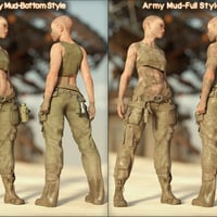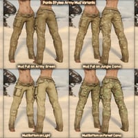 Mud: these explore a more guerrilla-in-the-woods approach to the Apocalypse. Army colors and patterns get drenched in Mud for those who prefer to survive in the jungle or muddy ruins. Mix these with our Skin Effects: Mud for a complete character!