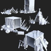 Add to your apocalyptic scenes with this makeshift shelter set.