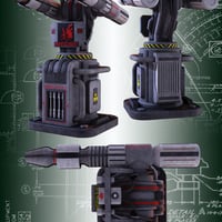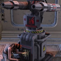Beef up your security system with this futuristic particle beam turret. Includes rotating turret, pivoting guns and a twin beam smart-prop with a length morph.