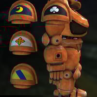 Four highly detailed textures sets are available, orange, blue with skull mask, blue green, and camouflaged. There are five eye colors, blue, black, green, grey, and red. Four textured emblems are available for the shoulder panels and you can get the Predatron Droid moving with twelve poses. Lastly there is a Poser IBL light set available to give a head start in making the droid look good.