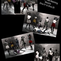 Draping/Pose Matching morphs were created for the corresponding figures and may need adjustments for use with other shapes (Example: Aiko 6 Pose Draping was created using the Aiko 6 Shape). Every effort has been made to provide high quality morphs for this set, however some poses where figure limbs intersect may have minor poke through. In most cases the poke through can be removed through pose adjustments, Adjustment morphs and/or increased smoothing levels.