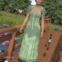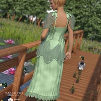 You'll love this spring-inspired 3D outfit for Genesis 2 Female that has a dress, slippers, leg ribbons, anklets, necklace, bracelet, sleeves and earrings.