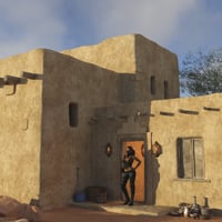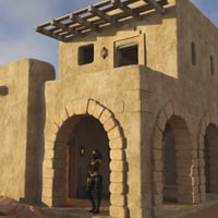 Primitive Houses 2 is a collection of 5 more simple mud buildings, hardened by the desert sun.