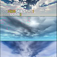 PRO-HDR-SKIES Vol_1 contains 10 high Resolution (8000 x 4000) Cumulus and Cirrus type HDR skies for TerraDome 3 (Daz Studio Iray Edition).