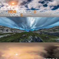 Focusing on fantasy skies each 32bit HDR spherical panorama has been meticulously re-lit from the ground up with professional HDR lighting software. As in TerraDome 3 and PRO-HDR-SKIES Vol_1 the light has been finely tuned to the correct intensity and color temperature and will give coverage across the entire TerraDome 3 environment.