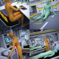 Advanced medical technology is embraced fully with this pose set for Psi MedBay. Set the scene for an initial diagnosis, a minor check up or researchers hard at work in their craft. These poses include load in place and load center scene for ease of use.