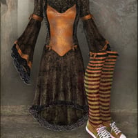 Pumpkin Avenue is THE hottest place this season for fashionable witches to find their spellbinding attire, like this gorgeous Gothic outfit for V4! Loaded with details, the Pumpkin Avenue clothing set consists of dress, stylish over-the-knee socks, cool witchy sneakers, and a spooky necklace with matching earrings. Morph targets for V4++, A4 and V4 Elite, as well as additional fitting and movement morphs and body handles on the dress give you plenty of fitting options for any character. Also included with this set are a highly detailed posing base with Pumpkin Avenue signpost, a climbing pumpkin vine, a pumpkin prop, and a very personable Jack O'Lantern (named "Pumpkin Jack") who has 19 different face morphs for near limitless expressions! Pumpkin Avenue comes with three complete texture sets for all the items, and MAT poses for both Poser and DAZ Studio. Also available in a specially priced bundle with the alluring witch Arielle herself!