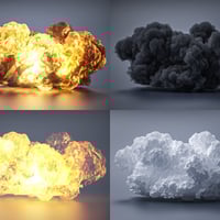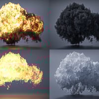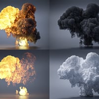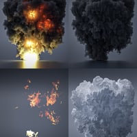 This set included 17 different explosive props for Daz Studio and Iray. Made using a special process to convert voxel-based simulations to high-poly 3D models, these props imitate realistic smoke and fire, viewable from all angles. Textured flames cast light in your scenes while multiple smoke materials change their overall style.