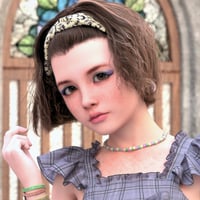 Meet Dianora for Genesis 9. Dianora is a girl of Italian descent with a sophisticated look and a soft neoclassical style. She has a pretty smile, an expressive gaze, and stands at 150 cm tall.