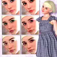 Dianora comes in two skin tones, includes an eyebrow skin apply and remove option, two eye colors (blue and brown), two eyelash types (short and long), one lip gloss, three lip colors, five eye makeup looks, one personalized party makeup look, five nail colors, one mouth and teeth shade, one tear duct shade, personalized fiber eyebrows with two color options, and personalized teeth.