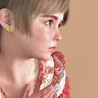 Palmira comes in two skin tones, two eye colors (blue and brown), two types of eyelashes (short and long), three lip colors, seven eye makeup looks, two personalized party makeup looks, one mouth and teeth shade, one tear duct shade, two personalized fiber eyebrows, and personalized teeth.
