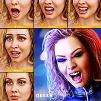This palette of expressions consists of 40 realistic and varied morphs. They are all created specifically for the Queen's appearance and are therefore able to perfectly portray the full range of girl experiences. From hate to love, from a shy smile to brazen sarcasm, from delight to pain and fear. The combination of morphs will give you even more new combinations.What's Included and Features