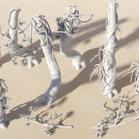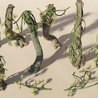 Fifteen individual flowering and non flowering models of plants, some growing around tree trunks some hanging free with their pivot point high above the ground and some flat to the ground, enabling you to make them scramble over almost anything or have a ready made support, plus an individual and high resolution flower model for individual placement and close up use. Two flower coloring material presets, two different tree bark options (palm and bleached wood) mean you can give the models a little bit more variety with the click of a button.