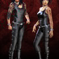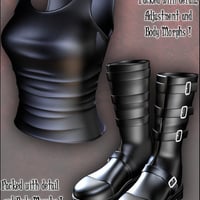 This conforming gothic style set comes with belt, boots, choker, pants, trench coat, top, and wrist bands. It was created with a variety of morphs including a male selection for the appropriate pieces!