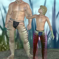 To complement the beautiful and mysterious Ranaki we are proud to introduce her fellow pond spirit and male counterpart, Ranaka for M4! Ranaka's conforming legs, swimwear, and necklace contain all the morphs for M4, Hiro 4, and the Freak 4, for the ultimate fit whether your male pond spirit is a tiny tree frog, a king of the pond bullfrog, or anything in between! Matching texture sets are included for Ranaka's frog legs and swimwear.