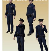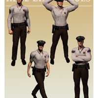 "To Protect and Serve", that is the role of our boys in blue and they prove their heroism every day by protecting the people. This is a tribute to the hard working Police force. This set comes with a complete uniform; a traditional cap, a shirt with short and long sleeved versions, pants, patent leather shoes, and a utility belt with detachable radio. Also included are a nightstick and pistol, smart-parented to the hand. A second set of brown and tan textures, along with an alternate six star badge, is included to give your police officer a more country sheriff look.