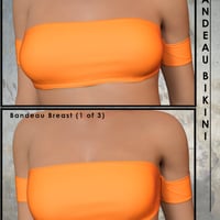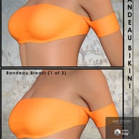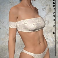 The RealFit line comes to Genesis 8 females with this versatile bandeau bikini set! Included are the normal RealFit HD morphs around the hips, chest, etc. plus three custom breast morphs to give a compressed look that would be expected with this type of top. Go from swimwear to intimate apparel with just a change in textures. Plus hide the sleeves for further variation in style.