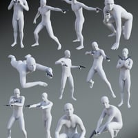 Introducing a set that includes 130 well crafted handgun poses for the Genesis 3 Male. This includes 25 individual and unique poses with each one coming with a reversed version. Also included are a further 40 partial poses for the arms and another 37 poses for the lower body and legs. This gives so much versatility and the possibility of many, many variations of each pose.