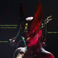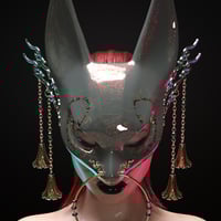 I conceptualized the Red Fox Mask based off of the iconic Kitsune and Anubis masks. The intent behind my design was to sculpt a recognizable silhouette that I could then adapt my signature rigged jewelry systems to.