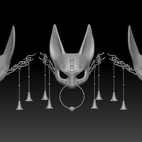 The mask features high poly details baked down onto a low poly mesh which creates beautiful details baked right into the normal maps. The mask is adorned with four rows of chains, each leading down to flowers that resemble bells. Each row is rigged with 21 joints allowing for dynamic animation and static posing.