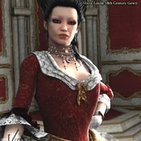 This stunning set of rich velvet and vibrant sequin textures for one of the best period dress models available for Victoria 4, is a must have for anyone who wants to recreate the richness and decadence of a past era! Four rich velvet texture sets and one bright sequin and velvet texture set for the full dress, hat and gloves, along with separate presets for the dress, under dress, bows, flowers and lace, give you a vast number of colorways for the gown, along with mat poses for the hat feathers and lace, and the bows on the gloves, enabling the use to have endless fun with this great outfit. Along with a full set of DAZ Studio and poser material poses, this set also contains a full set of sharers for Reality 2, which really bring the outfit to life when rendered with luxe's velvet shaders.