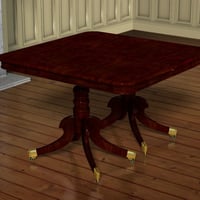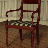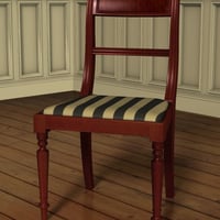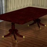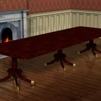 It comes with dining chairs and carvers, with two fabric options. To complete the set there is a bow-fronted serving table with inlaid legs and front panels. The set includes poses to extend the table and there is a complete set of chairs which load parented to the dining room in position.