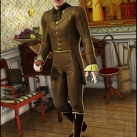 The British Regency period was noted for its flourishing upper class society of culture and refinement. Regency for M4 is a 7-piece 3D outfit plus walking cane and hat for Michael 4 that exemplifies the fashion of the era. Also included is a texture set in rich brown hues with a pale shirt.