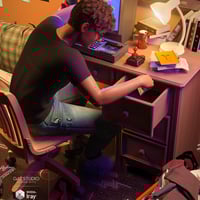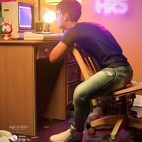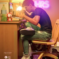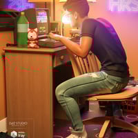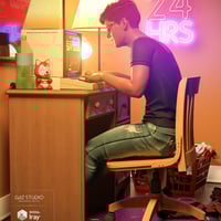To facilitate the use of these poses, included are also 5 wearable presets to load each of the 8bit Retro computer systems onto the Genesis 8 Male model, as well as loading the desk and chair from the Dream Home Children's Room.