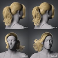 The ponytail and bangs are rigged with custom bones that allow you to pose the hair parts as needed.