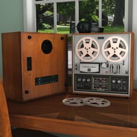 The classic 4 channel reel to reel tape recorder with controllable tape reels, knobs, switches, VU needles and counter.