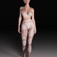 Featuring sheer floral lace textures and a flattering bralette-legging combo, this outfit is tailored to Genesis 9 characters with realistic body detailing and inclusive styling.