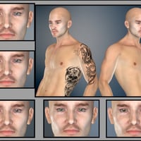 Jared is not the kind of guy that spends all his time in the gym, instead he prefers to be outdoors. Whether working or playing Jared is just a nature kind of guy, and natural is exactly what Jared brings to M4. With subtle changes in skin color and tone, Jared's skin shows his love for the outdoor life. He has five different eye options and the choice of using his base MAT or adding arm and torso tattoos. He comes with advanced shader node MAT poses for Poser 6/7 as well as DAZ Studio files.