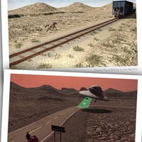 Road 'n' Rails comprises of a morphing road and a railroad, each of which are sized to fully span the TerraDome AZone, plus a railroad crossing and a variety of highway signs. Also included are hitchhiker props: a cardboard sign with different destination options, and a guitar case and small suitcase, each with a selection of materials.