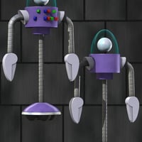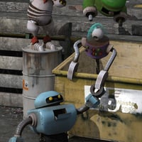These four toon robots show that a 'bot doesn't need to be humanoid or animal-shaped to be cute. Loaded with personality, the Robo Buds can be either fresh from the factory (complete with that New Bot Smell), or beat up a bit and showing the wear and tear of having been around the block a bit!