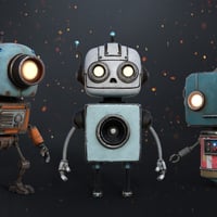 This prop pack gives you a set of cute robot props that you can use in art, renders, and games (Unreal, Blender, Unity, etc.)