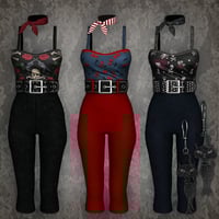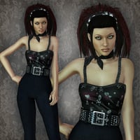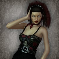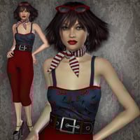 Rock around the clock with Rockabilly Outfit by Sarsa and PropsChick. A fricken sweet outfit for your pinup girl renders, more than likely gonna make your friends jealous. With her oooh-tooo-cool capri pants, rocked out studded belt, sexy scarf, low sloped top and kitty-cat earrings, you'll be the coolest cat in town.