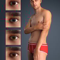 His skin was crafted from high quality photo references and included are 4 eye color options and 2 options for the Genesis 8 Male Anatomical Elements.